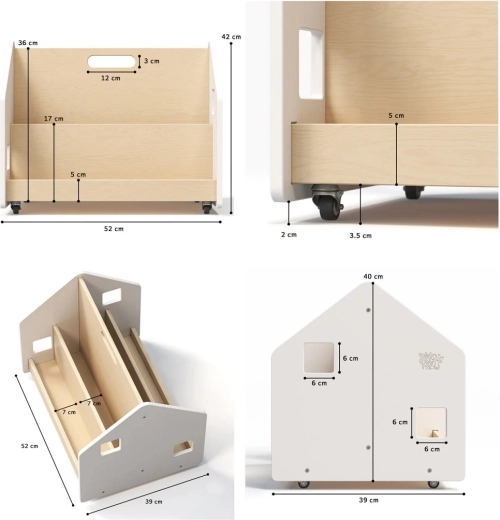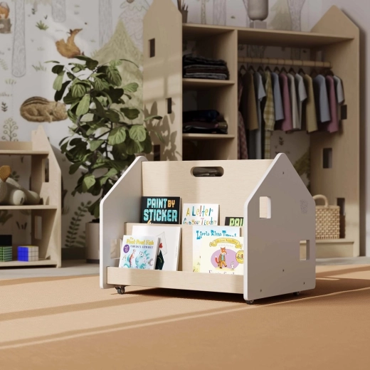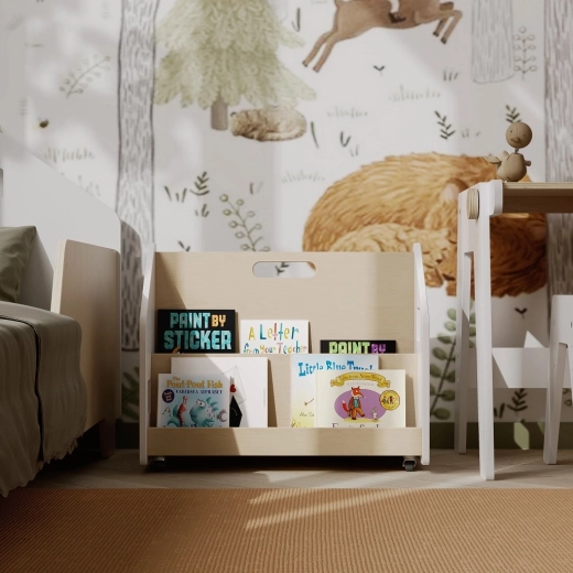 Encouragez l’amour de la lecture et l’autonomie des enfants. Cette bibliothèque double face permet d’exposer les livres de face, afin que les enfants voient facilement les couvertures et choisissent le titre qui les attire. Grâce à ses dimensions compactes 52 × 39 × 40 cm, elle s’intègre dans toute chambre d’enfant ou coin de jeux et, grâce aux roulettes, se déplace rapidement là où elle est nécessaire.
