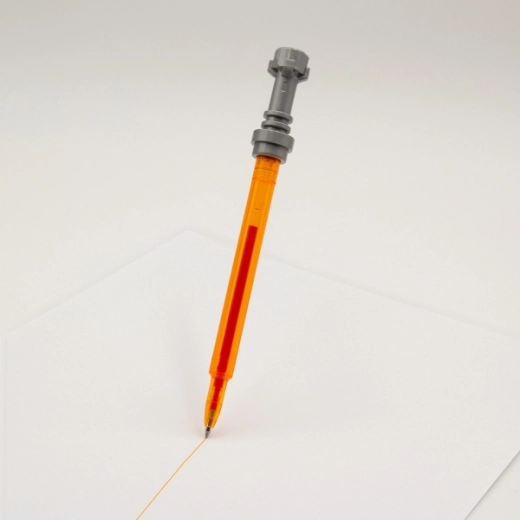 Le design orange reprend l’apparence d’un sabre laser, faisant de ce stylo non seulement un instrument d’écriture, mais aussi un objet de collection stylé. Sa forme ergonomique tient confortablement en main et facilite les sessions d’écriture prolongées.