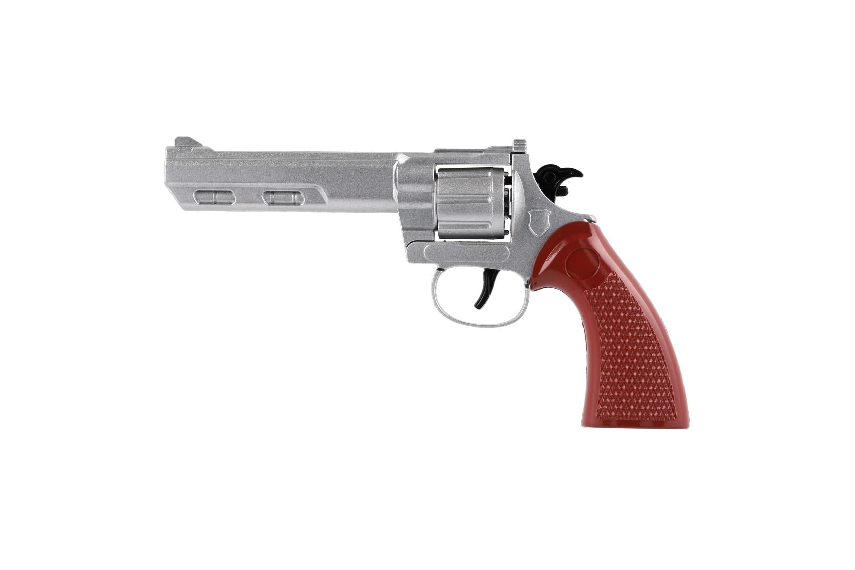 Ce revolver stylé de 22 cm offre un look authentique et un fonctionnement fiable pour les jeux d’enfants. Le corps en métal renforce l’effet réaliste, tandis que l’effet sonore avec les capsules 8 coups intensifie l’ambiance d’aventure. Grâce à sa poignée ergonomique, le pistolet se tient bien même durant de longues sessions de jeu.