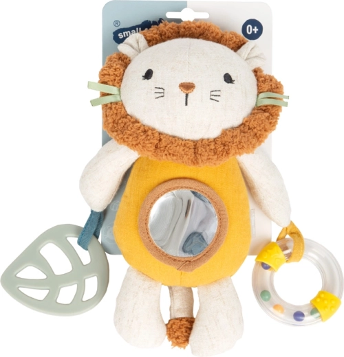 Le petit lion tout doux se distingue par ses surfaces en mousseline et en peluche, agréables au toucher et propices aux câlins. Le hochet intégré avec perles, le petit miroir sécurisé sur le ventre et l’anneau de dentition souple offrent aux bébés une riche stimulation de la vue, de l’ouïe et du toucher. Grâce au clip de suspension, vous fixez facilement le petit lion à la poussette, au lit, au siège auto ou à l’arche d’éveil.
