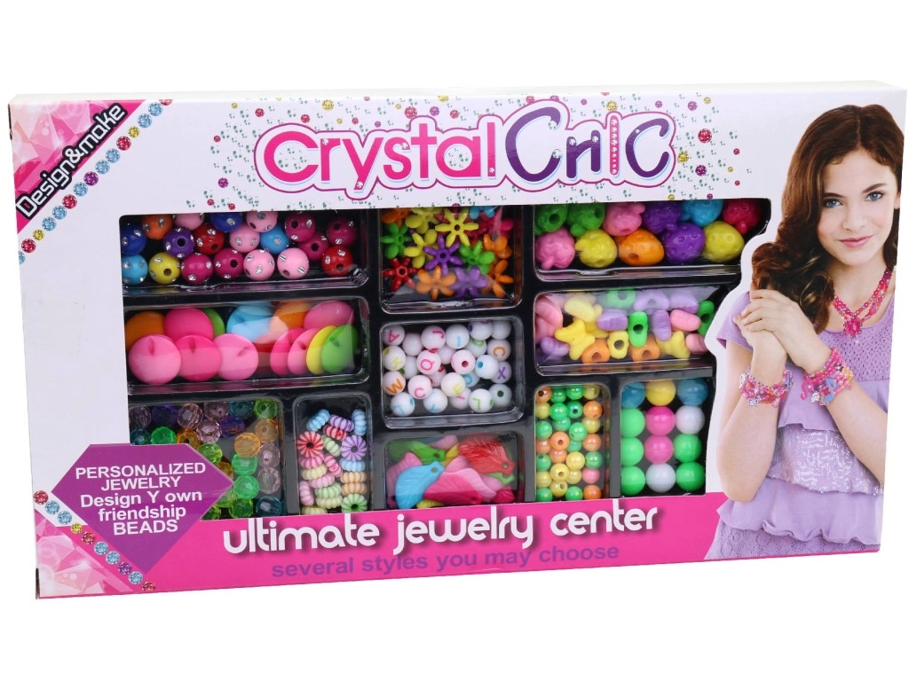Emballé en window box – parfait comme cadeau. Les dimensions du set sont 27 × 15 × 2,5 cm, le matériau est un plastique résistant, léger pour le port et le jeu quotidien. Excellent choix pour les petites créatrices qui aiment la création de bijoux.