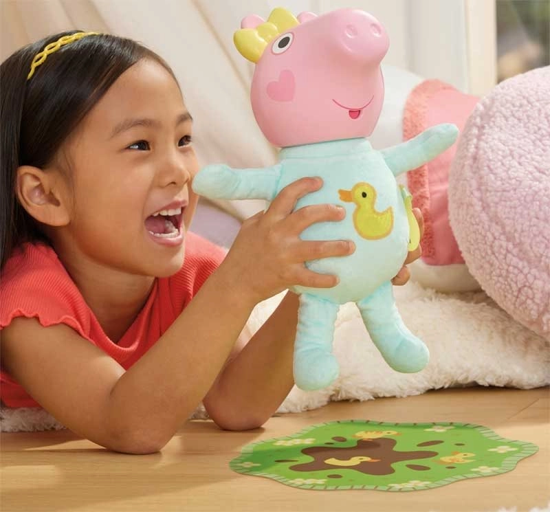 Elle encourage l’imagination, les compétences de soin et les rituels apaisants avant le coucher. Grâce à son look iconique de l’univers Peppa Pig, les enfants peuvent facilement rejouer leurs scènes préférées de la série et inventer leurs propres histoires.