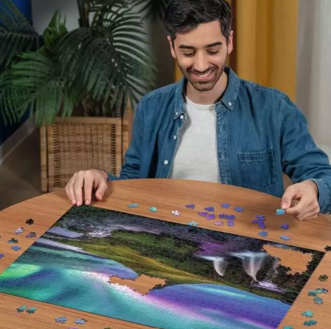 Le motif « Nuit magique en Islande » capture l’aurore polaire, des cascades et une rivière dans des couleurs saisissantes. Le puzzle de 1000 pièces est un choix idéal pour les débutants avancés comme pour les puzzleurs expérimentés à la recherche à la fois de détente et de défi mental.