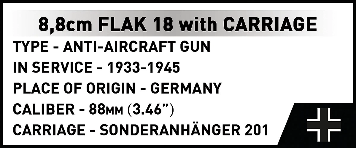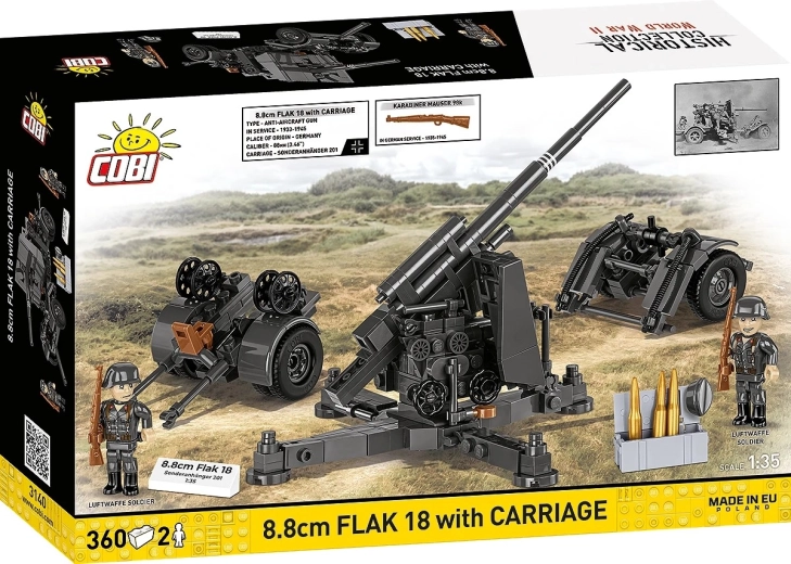 Construisez le légendaire canon allemand 8,8 cm FLAK 18 avec chariot détaillé et accessoires. Ce set de 360 pièces offre un rendu réaliste, une élévation réglable et un socle cruciforme stable – idéal pour les collectionneurs, passionnés d’histoire et amateurs de briques.