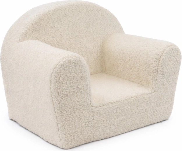 Le fauteuil pour enfants New Baby Teddy en tissu bouclé beige allie style et confort pour la détente comme pour le jeu. Il possède un garnissage moelleux, une housse facilement amovible et lavable et des matériaux certifiés OEKO-TEX STANDARD.