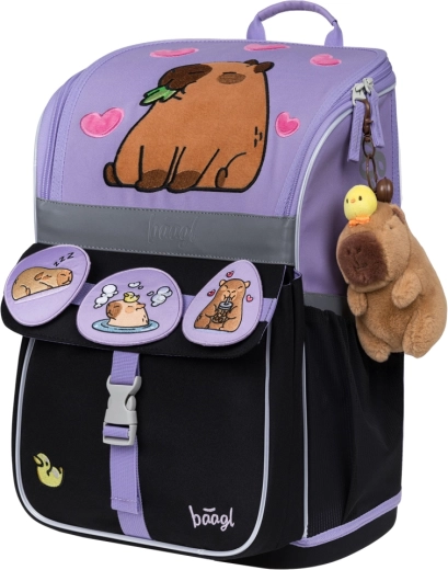 Les éléments réfléchissants améliorent la visibilité par faible luminosité, tandis que les badges interchangeables et le porte-clés en peluche permettent de personnaliser facilement le cartable.