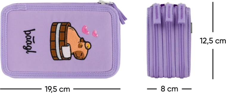 Gardez toutes vos fournitures bien organisées au même endroit. La trousse scolaire trois étages Baagl avec motif capybara est idéale pour les élèves qui ont besoin de plus d’espace et apprécient une fabrication de qualité. Grâce à son agencement bien pensé, elle accueille aisément crayons de couleur, feutres, stylos et autres accessoires.