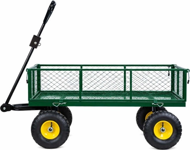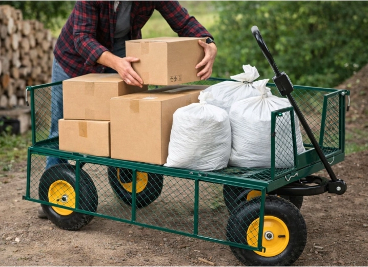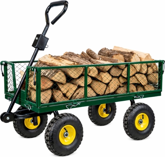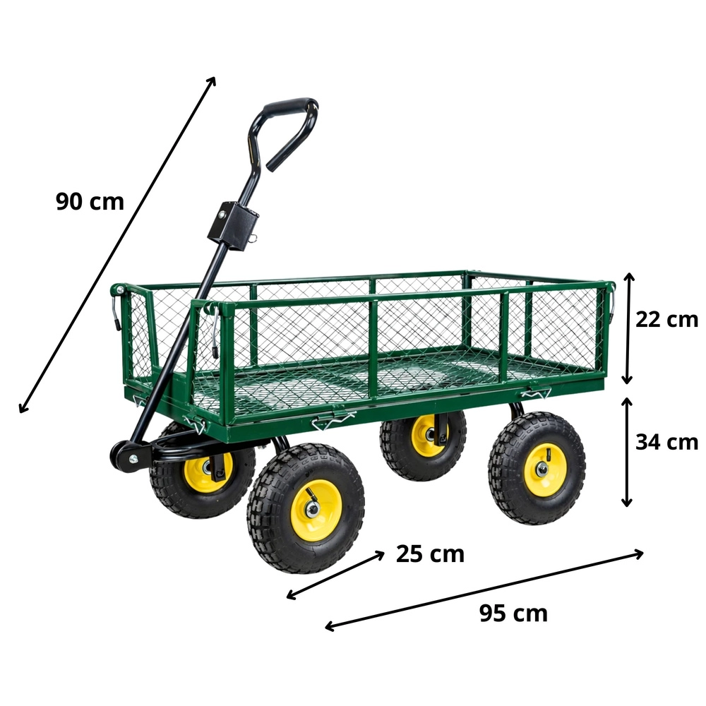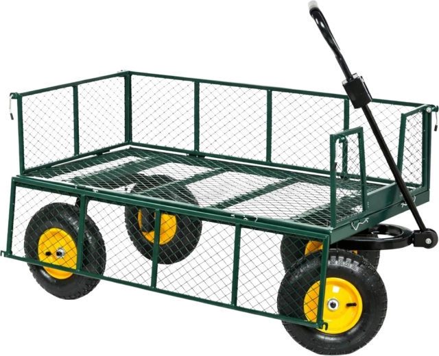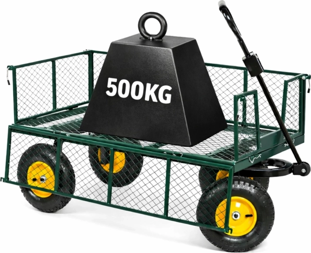 Vous cherchez une aide polyvalente pour le jardin, le chantier ou l’atelier ? Ce chariot de jardin en acier d’une capacité de 200 kg transporte terre, bois, pierres et outils. La structure stable à quatre roues avec pneus gonflables atténue les irrégularités sur gazon, gravier et dalles, et l’essieu avant pivotant garantit une direction précise même à pleine charge.