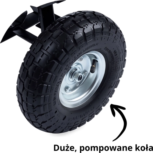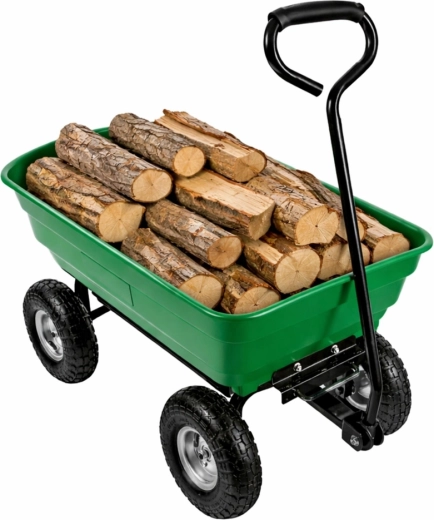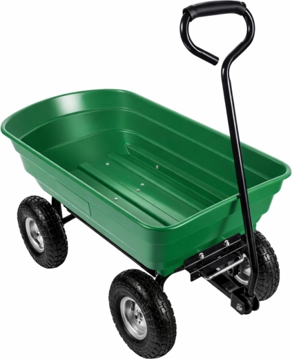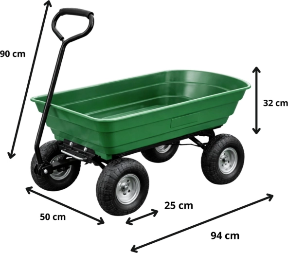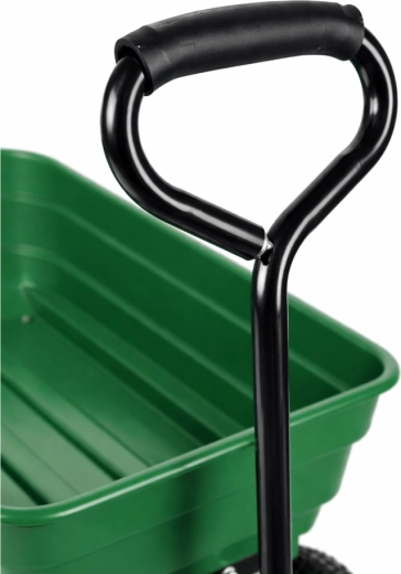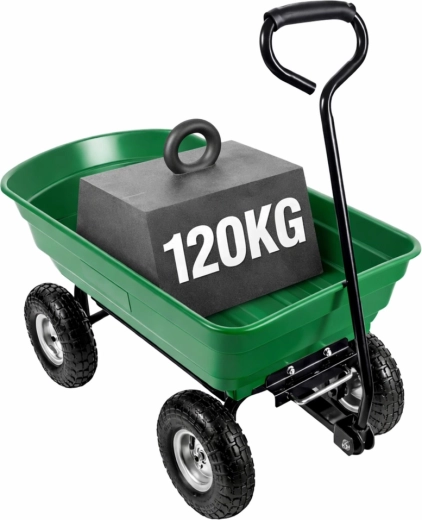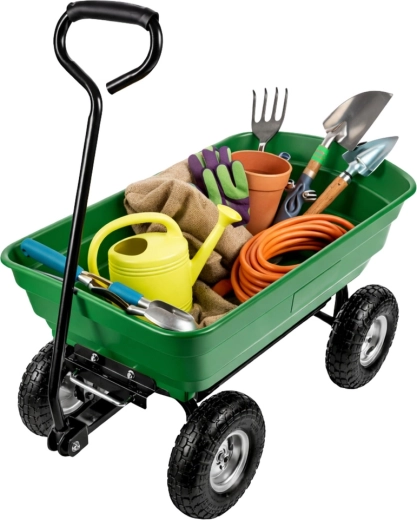 Pratique chariot de jardin avec une capacité de charge jusqu’à 120 kg pour faciliter le transport de terre, d’outils, d’engrais, de bois et de déchets verts. Quatre roues pneumatiques en caoutchouc assurent stabilité et conduite fluide sur l’herbe, le gravier et le sable. La benne amovible et basculante accélère le chargement et le déchargement, tandis que l’anneau d’attelage permet la connexion à un tracteur de jardin ou une tondeuse autoportée. Un assistant idéal pour les travaux quotidiens au jardin et autour de la maison.
