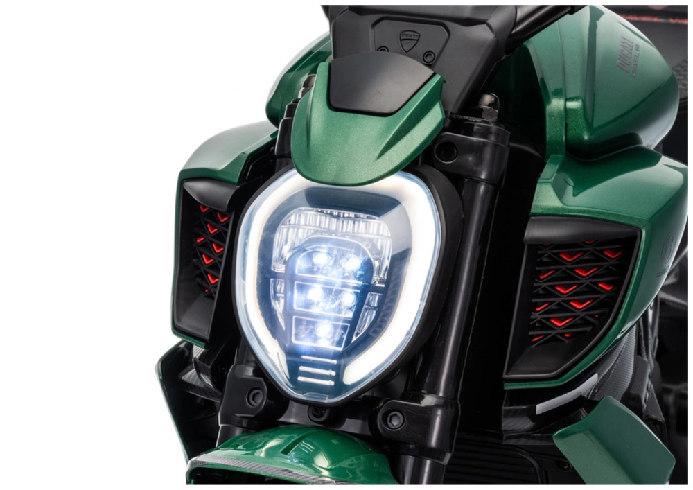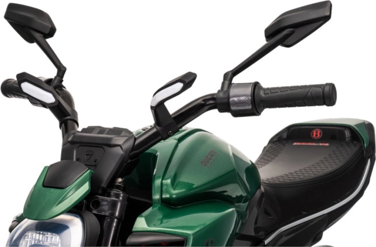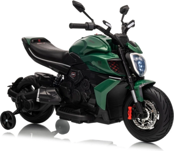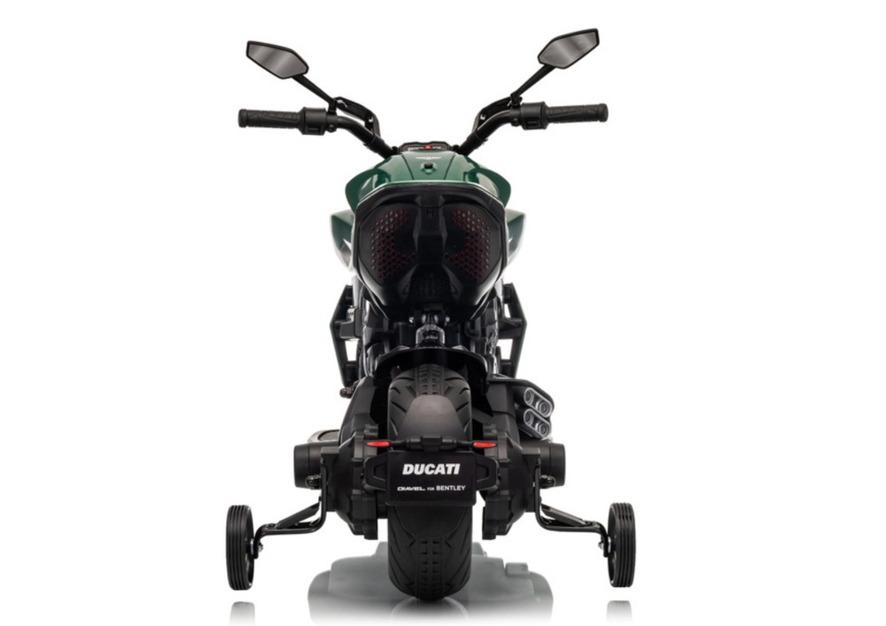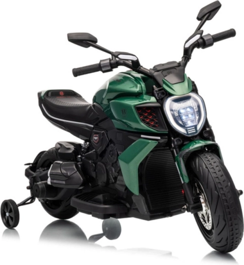Une moto électrique pour enfants au style inspiré de la DUCATI DIAVEL V4, offrant aux petits une distraction sûre et leurs premières expériences de conduite. Grâce aux petites roues d’appui, la conduite est stable et convient aussi aux débutants. La moto propose des détails réalistes, un phare LED lumineux et une commande confortable au guidon. Idéale pour les jeux en extérieur et le développement de l’équilibre et de la coordination. Les roulettes de stabilisation, le phare LED, le design réaliste et la propulsion par batterie raviront les petits pilotes et leurs parents.