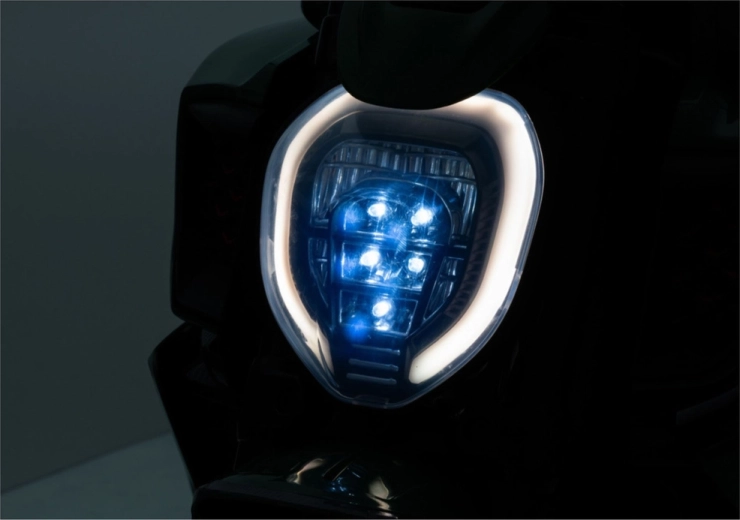 Le phare avant LED intégré améliore la visibilité et confère à la moto un look réaliste de sportive routière.