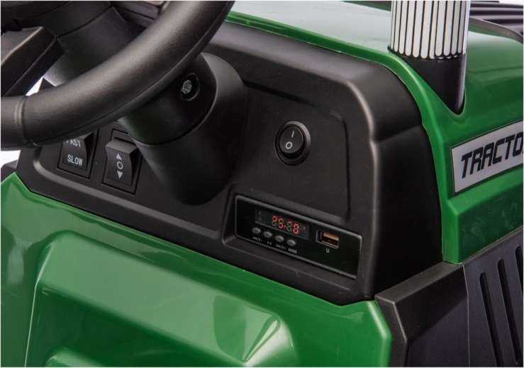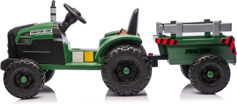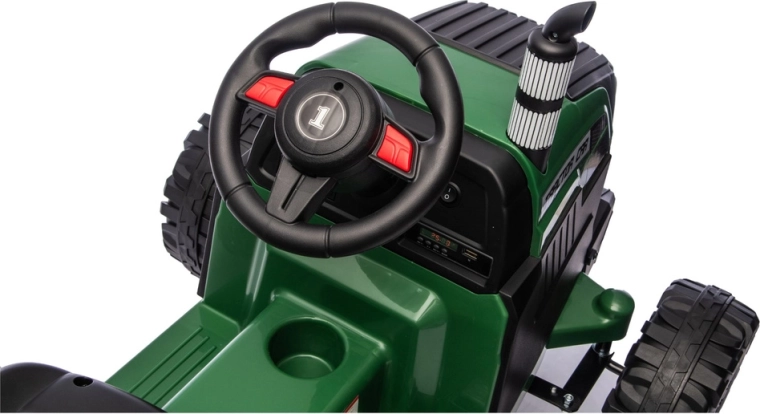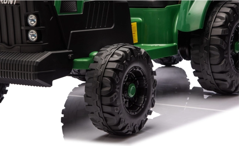 Le tracteur électrique pour enfants avec remorque en vert foncé offre une conduite réaliste et beaucoup de plaisir au jardin comme dans la cour. Grâce à sa puissante alimentation 24V, ses roues robustes et sa remorque amovible, les enfants profitent d’un transport sécurisé de jouets et de jeux de ferme aventureux.