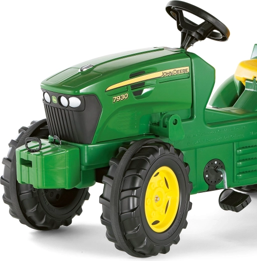 Le tracteur à pédales Rolly Toys dans l’iconique combinaison vert-jaune JOHN DEERE est fabriqué en plastique de qualité à finition brillante, facile à nettoyer. Grâce à la transmission à chaîne, même un petit enfant peut pédaler facilement, tandis que tout le mécanisme est entièrement caréné pour une sécurité maximale. Le capot ouvrant et les détails réalistes stimulent l’imagination et le jeu de ferme.