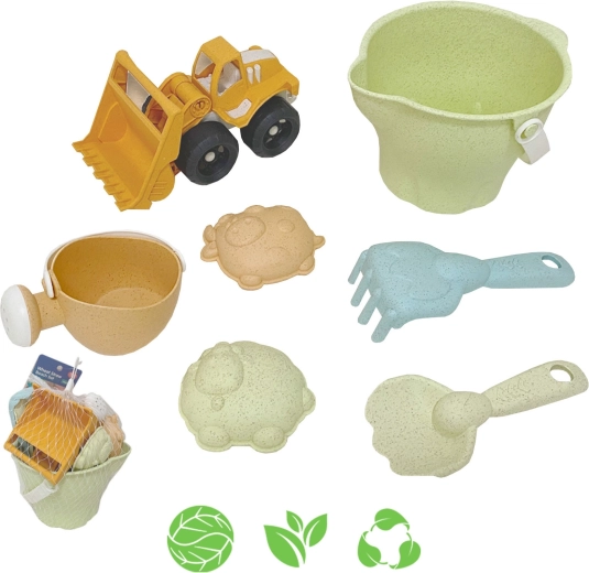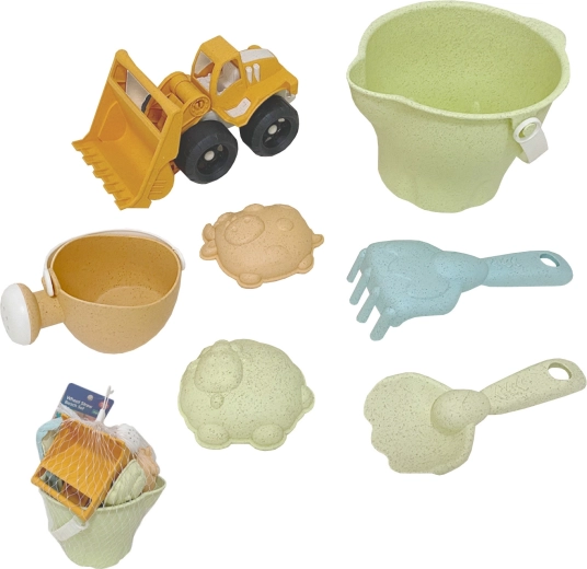 Le set de sable WOOPIE GREEN est conçu pour allier plaisir et durabilité. Les éléments sont désinfectés à 120 °C, donc sans danger pour les enfants, et fabriqués en matériau organique à base de blé qui se décompose naturellement dans le sol. Le design pastel plaira aux enfants comme aux parents et stimule la construction créative de châteaux, le moulage et le transport du sable avec la petite voiture.