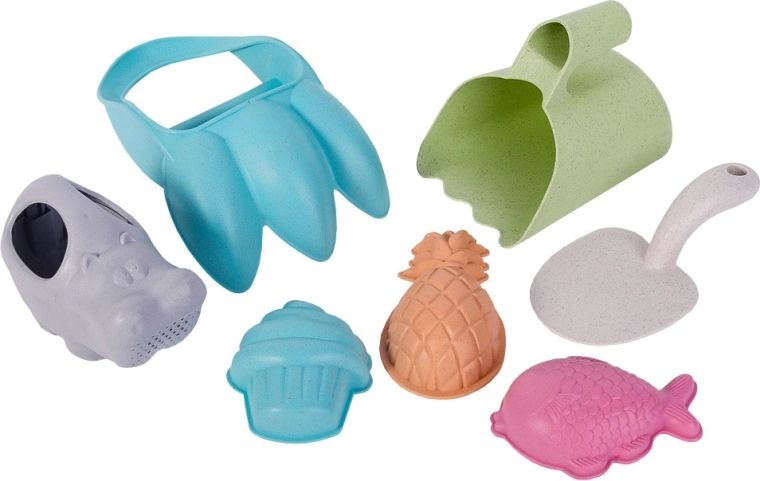 Avec cet ensemble de qualité de la marque WOOPIE, les enfants profiteront d'heures de jeu créatif en plein air. Le matériau organique à base de fibres de blé est respectueux de l'environnement, se décompose naturellement après un séjour prolongé en terre et est compostable. Les couleurs pastel sont modernes et agréables, les pièces sont légères, résistantes et se tiennent facilement même par de petites mains d'enfant.