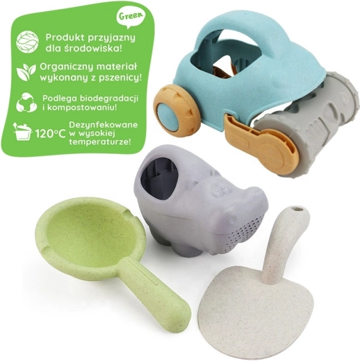 Le matériau à base de fibres végétales est écologique, biodégradable et apte au compostage. Le set se nettoie facilement et, grâce aux prises ergonomiques, il est simple à manipuler pour les enfants. Convient pour jouer dehors comme à la maison avec du sable cinétique.