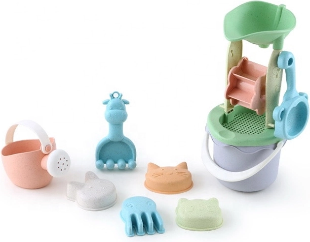 Le set de sable pour enfants Woopie Green apporte du plaisir dans le sable comme dans l’eau, dans une version écologique. Il comprend 9 pièces dont un seau, un moulin avec tamis, un arrosoir, des moules, une pelle et un râteau. Le tout est fabriqué en matériau organique et biodégradable au design pastel. Les éléments possèdent des poignées confortables et sont sans danger pour les enfants – désinfectés à 120 °C. Idéal pour le bac à sable, la plage et le jardin.