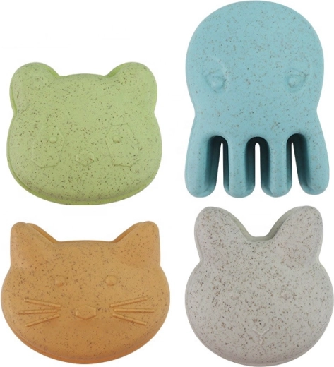 Le set est fabriqué en matériau organique et compostable à base de fibres de blé, qui se décompose naturellement dans l’environnement. Les couleurs pastel et les formes attrayantes d’animaux stimulent l’imagination, tandis que les différents outils développent la motricité fine et globale, la coordination œil–main et la représentation spatiale.