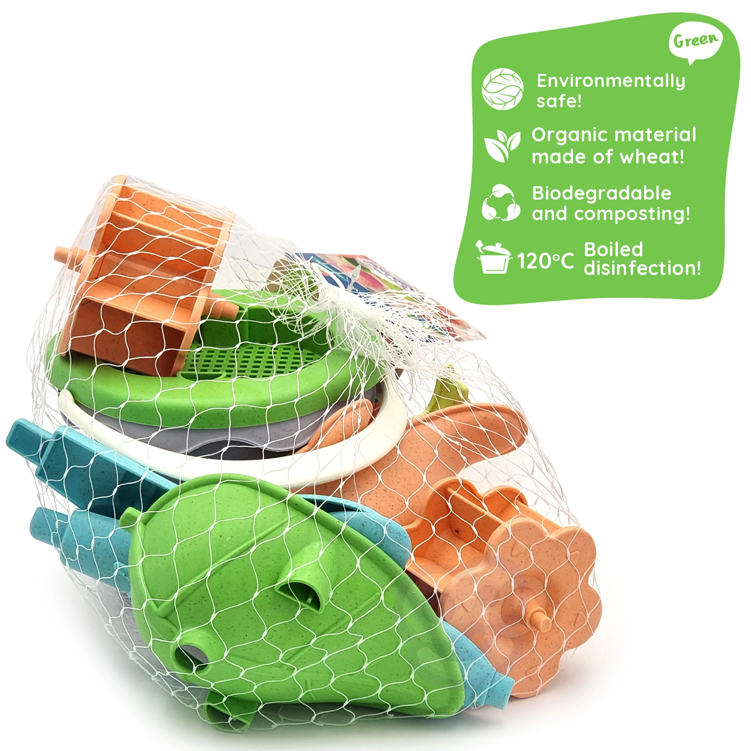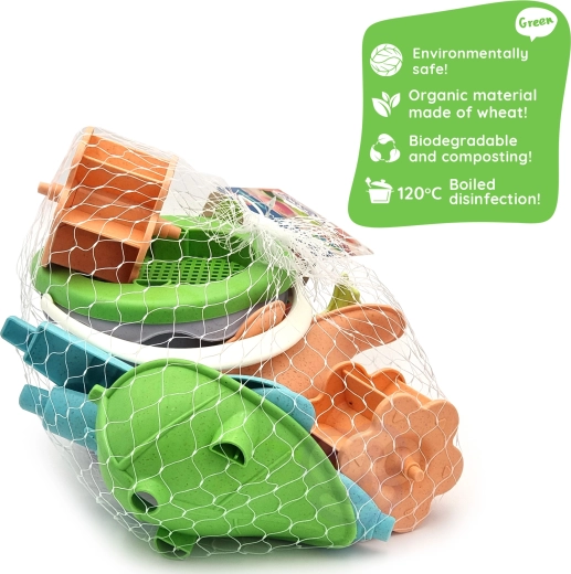 Le set est fabriqué en matériau organique biodégradable d’origine végétale, compostable. Des formes lisses, un plastique résistant et un entretien facile assurent une utilisation sûre et durable. Les couleurs pastel plaisent aux enfants comme aux parents et s’accordent parfaitement avec d’autres jouets de plage.