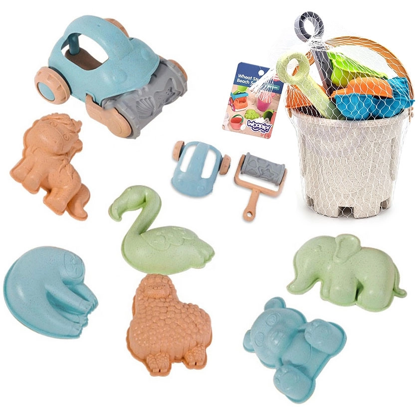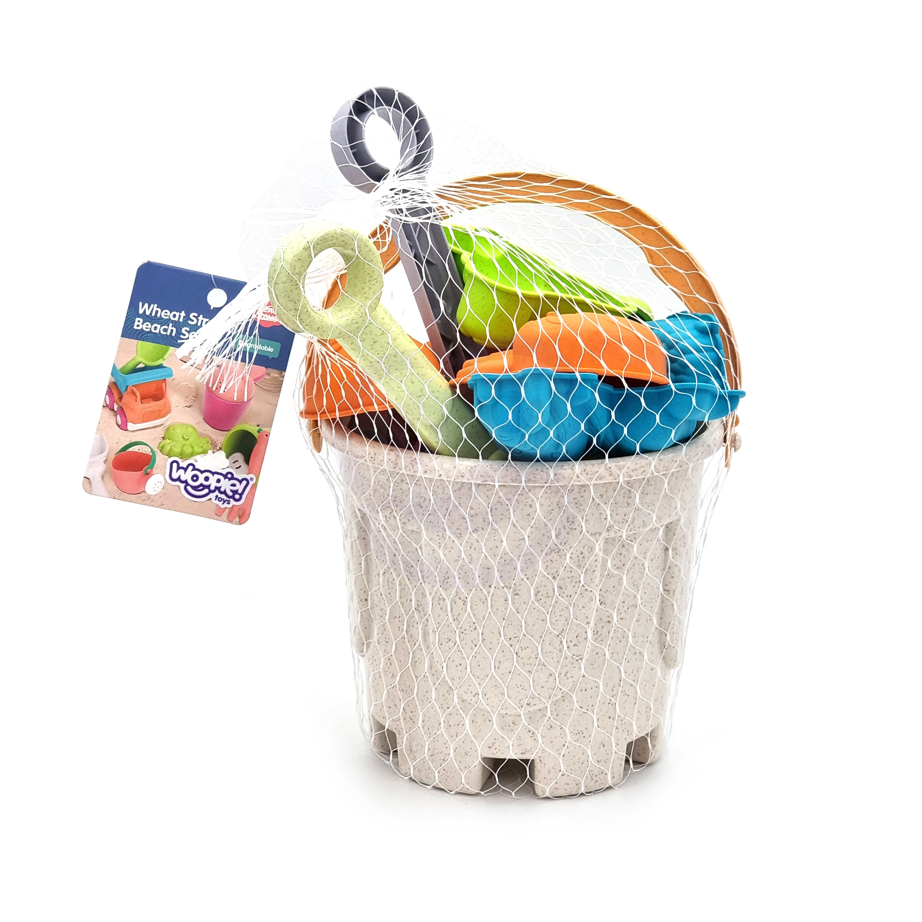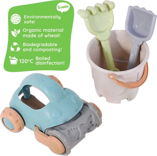 Ce set de sable écologique de la marque WOOPIE est fabriqué en matériau organique à base de fibres de blé, biodégradable et compostable. Grâce à sa conception résistante, ses formes arrondies et sa légèreté, il est parfait pour les petites mains et le jeu en plein air en toute sécurité.