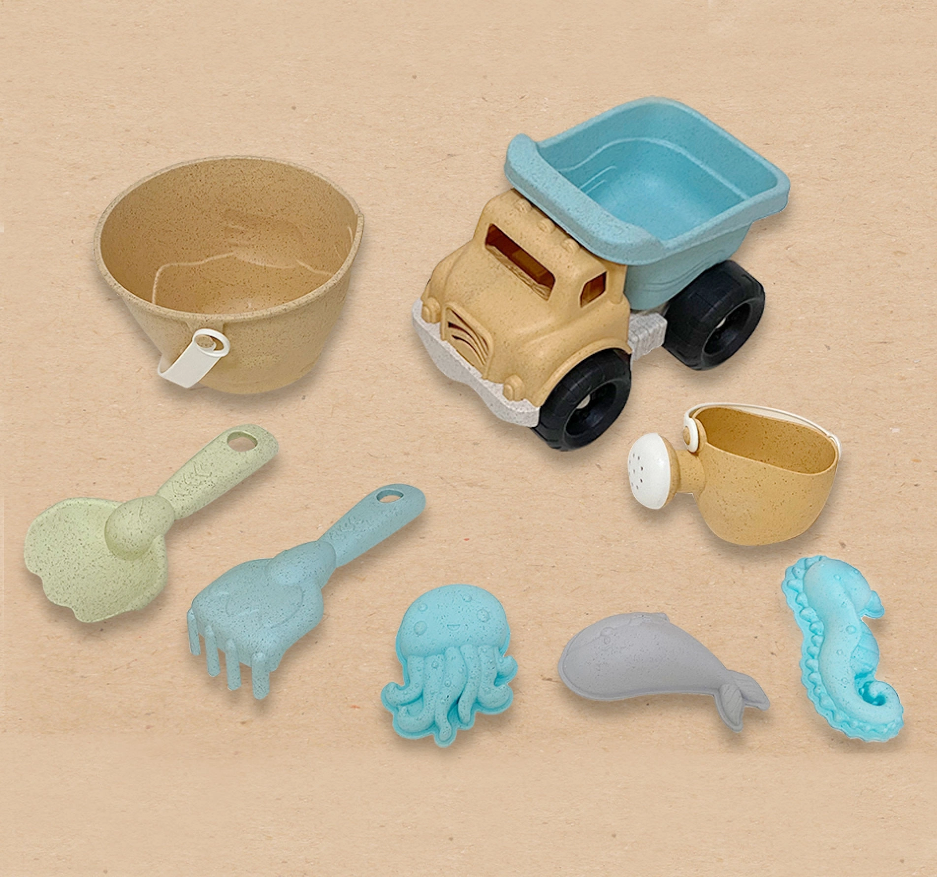 Le set de sable WOOPIE GREEN offre aux enfants des heures de jeu créatif et aux parents la tranquillité d’un choix respectueux. Le produit est fabriqué en matériau organique et écologique à base de fibres de blé, qui se décompose naturellement dans le sol et est compostable. Les couleurs pastel et les formes ergonomiques favorisent un jeu agréable et sûr.