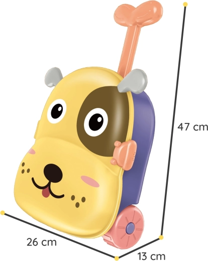 Légère valisette en forme de chien avec poignée télescopique et roulettes robustes pour faciliter le transport et le rangement de l’ensemble. Idéale pour les sorties, le terrain de jeu et les vacances.