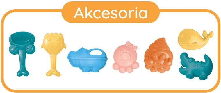Pelles, râteau, gobelet et moules aux couleurs ludiques stimulent la créativité et la coopération. Toutes les pièces ont des formes sûres et arrondies pour une utilisation confortable par les enfants.