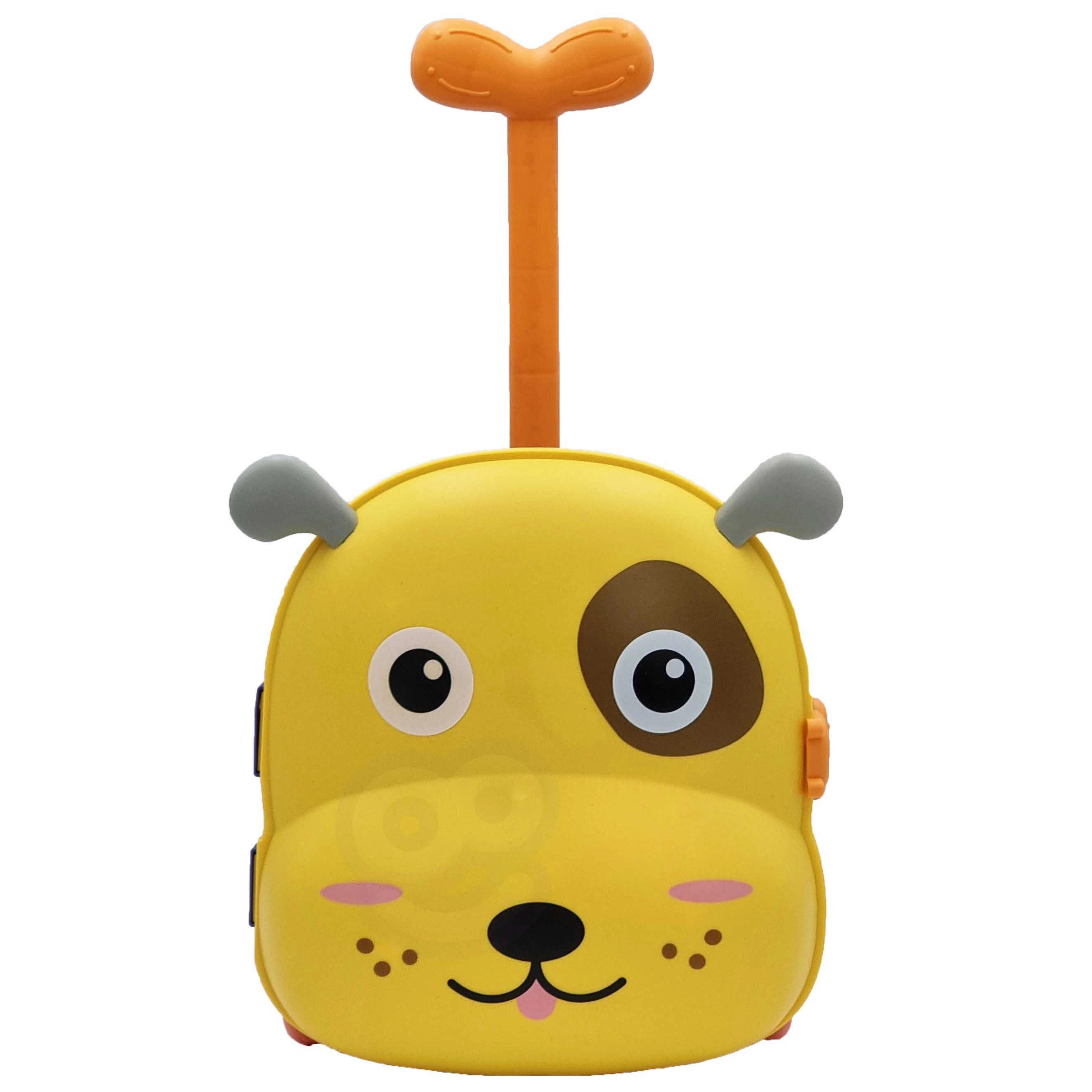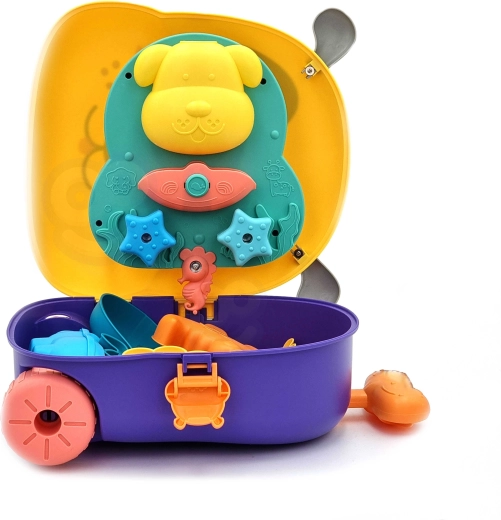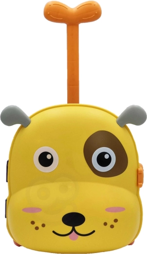 Légère, la valise en forme de chien sert d’espace de rangement, de petite bassine portable et de station de jeu. Grâce aux roulettes et à la poignée télescopique, l’enfant peut la tirer facilement.