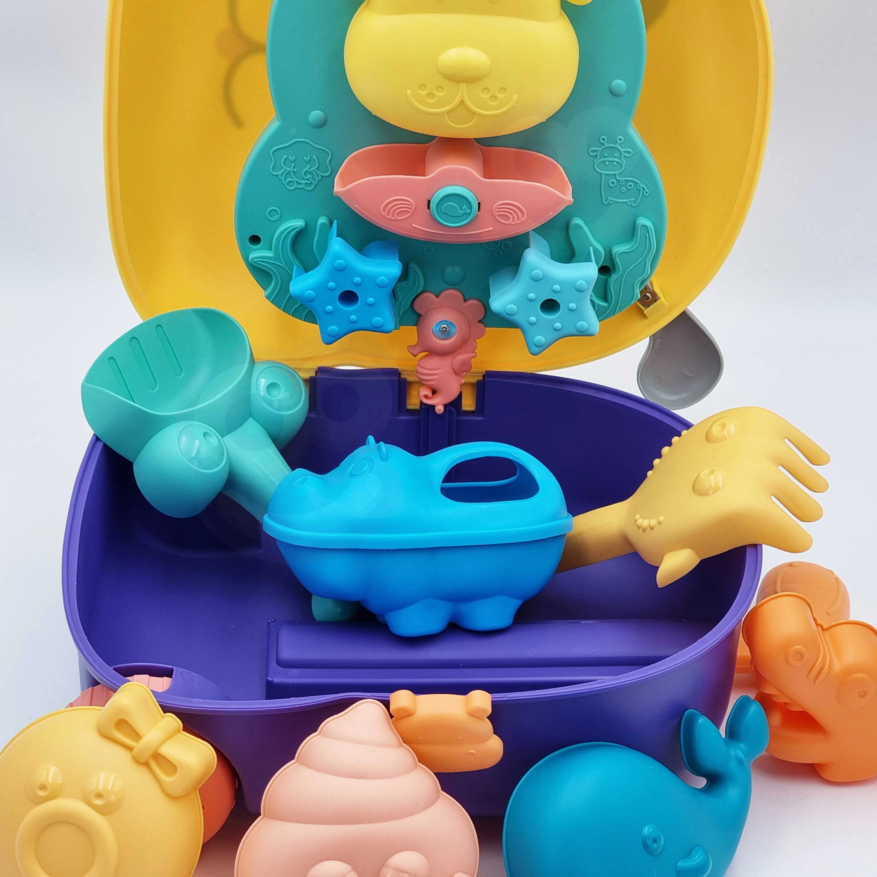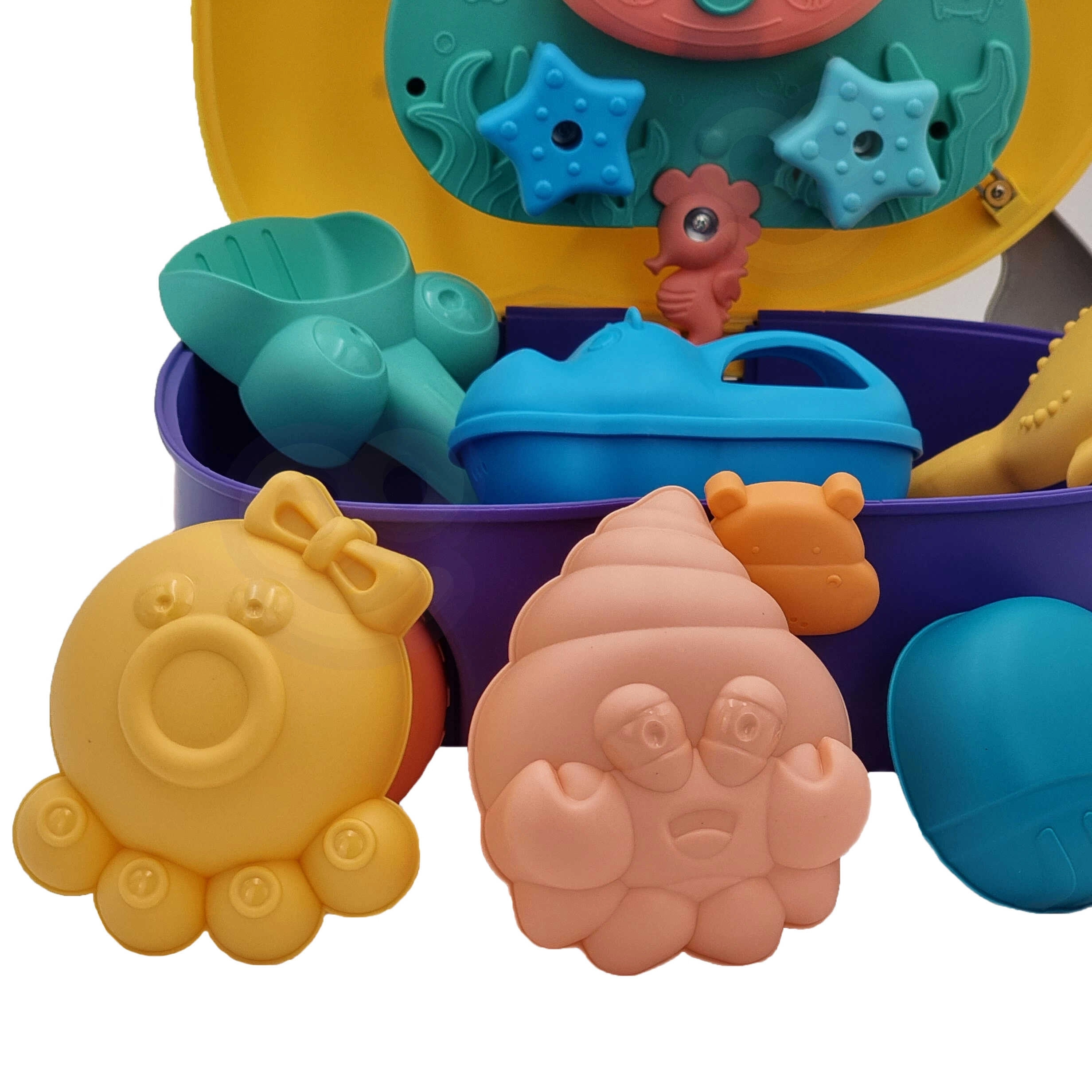 Comprend un gobelet pour verser, un râteau, une pelle et des moules. Parfait pour le bac à sable, la plage et la salle de bain – amusement pour un ou deux enfants.