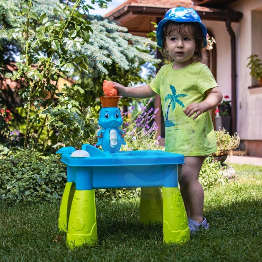 La table est suffisamment stable pour jouer au jardin, sur la terrasse ou dans la chambre d’enfant. Grâce au riche set d’accessoires, les enfants peuvent puiser, transvaser, mouler et créer leurs propres expériences aquatiques. Montage facile et structure compacte pour un transport et un rangement simplifiés.