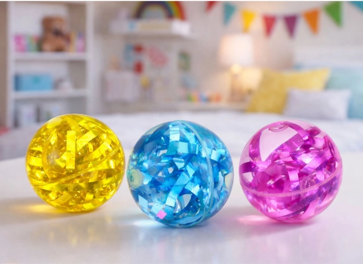 Découvrez le plaisir du mouvement avec cette balle lumineuse remplie de confettis scintillants. À chaque rebond, la balle s’illumine avec des effets lumineux colorés qui captivent enfants et adultes, surtout dans la pénombre. Le corps transparent met en valeur les confettis virevoltants, apportant dynamisme et attrait visuel au jeu.