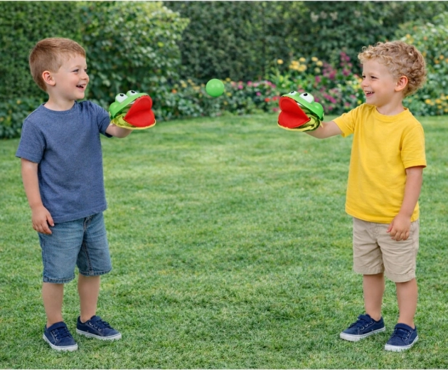 Transformez chaque rencontre en compétition joyeuse ! Les attrape-grenouilles se portent directement sur la main, où, grâce à leur forme ergonomique et à leurs sangles réglables à fermeture velcro, ils tiennent parfaitement. La « gueule » ouvrante de la grenouille permet le lancement rapide des balles vers l’adversaire et leur capture aisée.