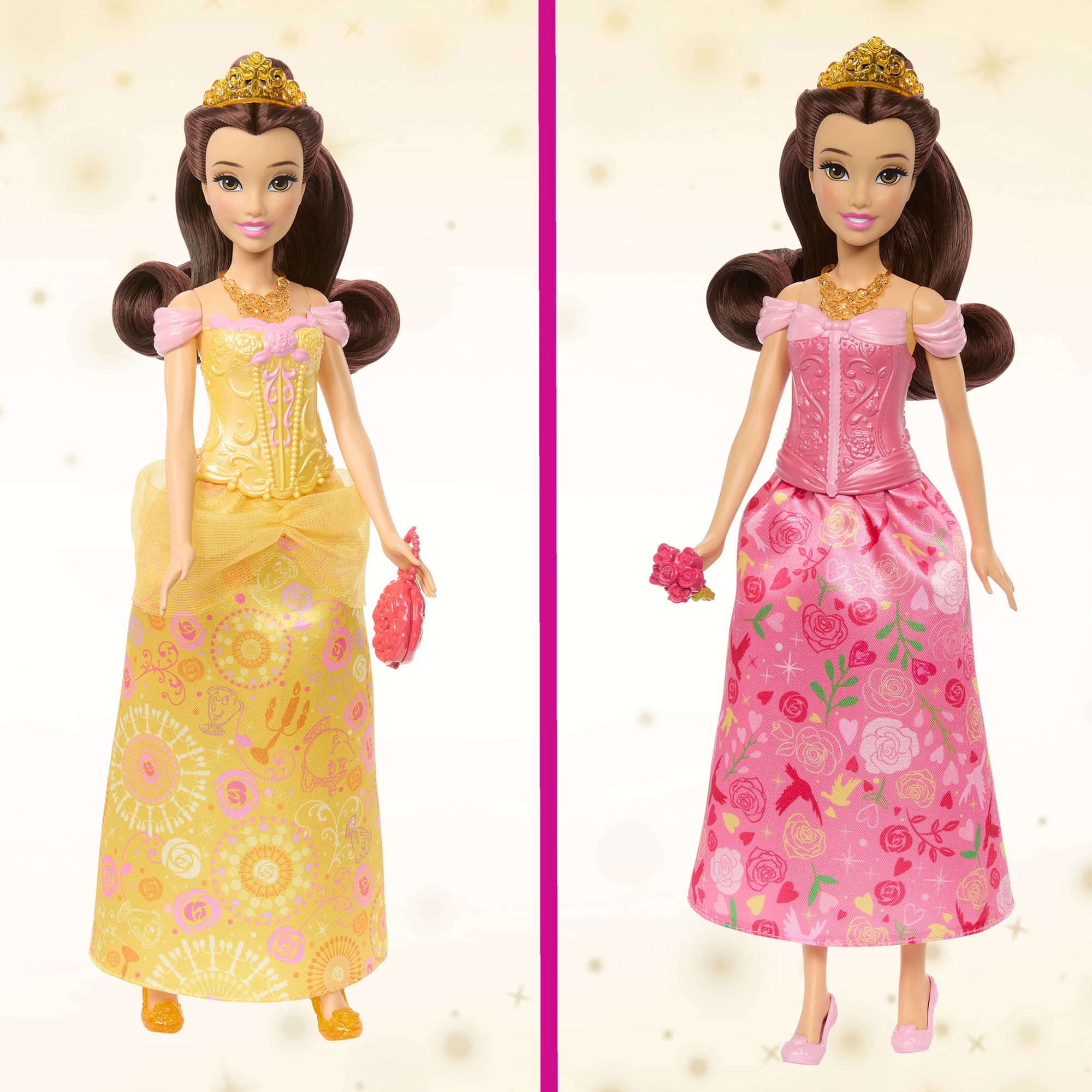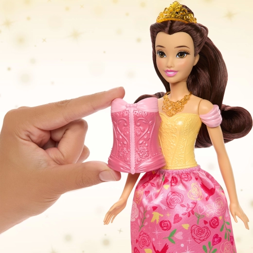 Découvrez le monde féerique du conte avec la poupée Belle inspirée de Disney La Belle et la Bête. Profitez de 2 styles en 1 – un élégant bal et un goûter cosy. Inclus : 2 corsages interchangeables, 2 jupes en tissu, de longs cheveux à coiffer, une tiare et des accessoires thématiques. Grâce aux points d’articulation, Belle peut facilement prendre différentes poses pour un jeu créatif.