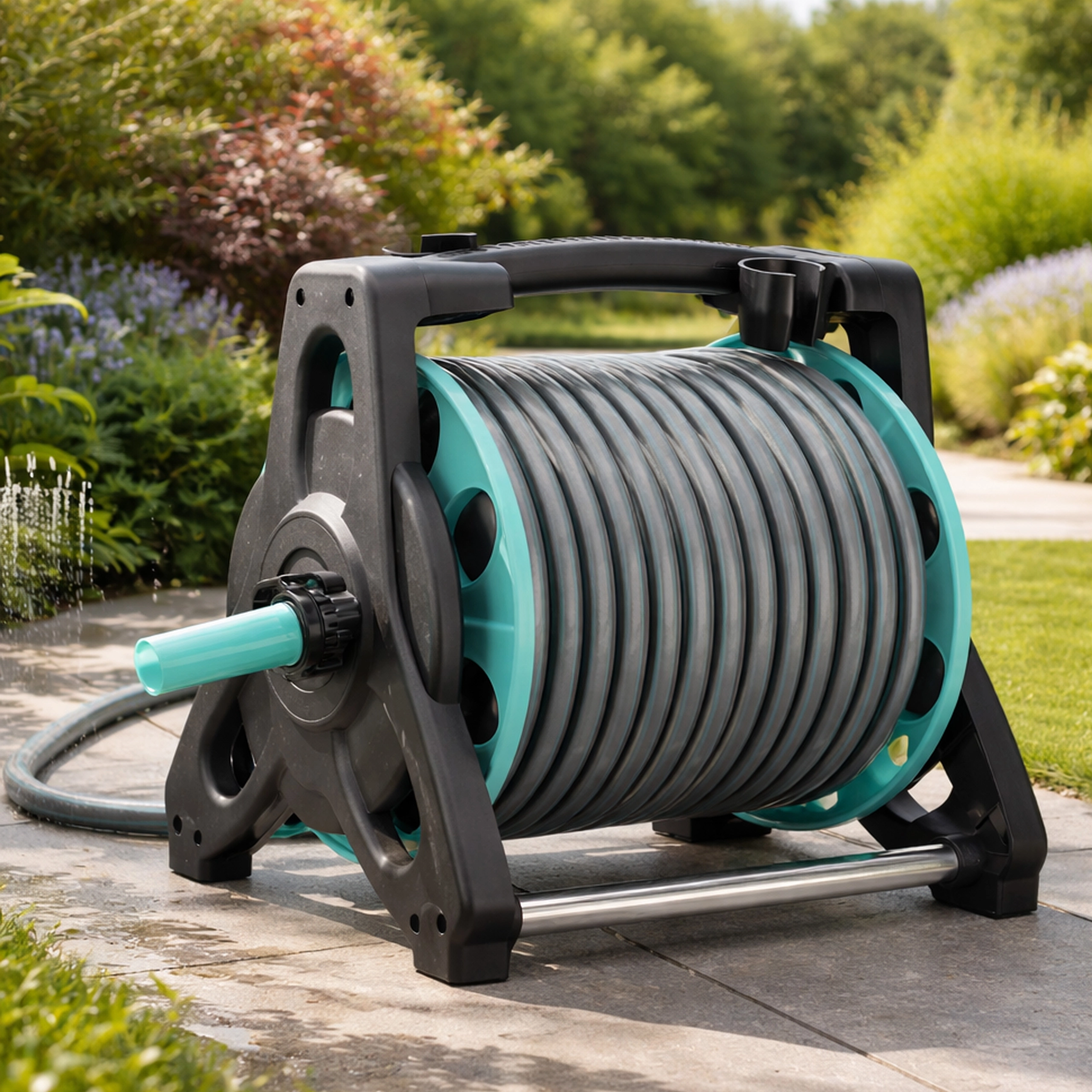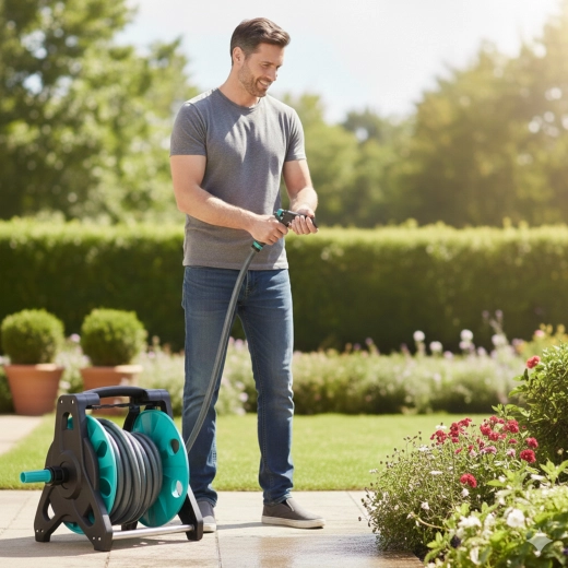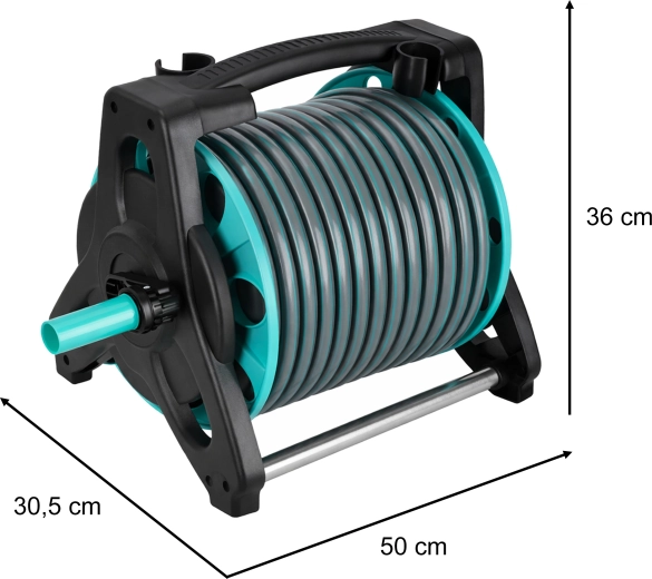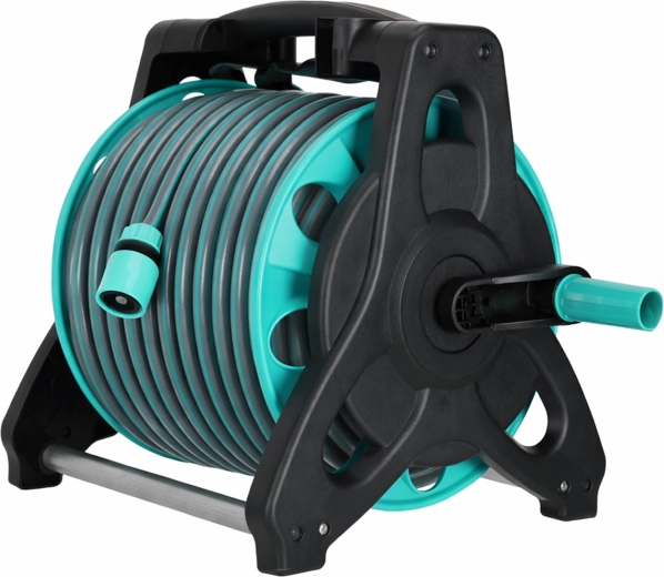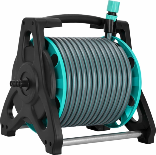 Tout est fourni pour une utilisation immédiate : tuyau d’alimentation de 2 m, raccords rapides, adaptateurs et raccord de robinet. L’enrouleur maintient le tuyau sans torsions ni plis, rendant l’arrosage plus rapide, plus propre et plus efficace.