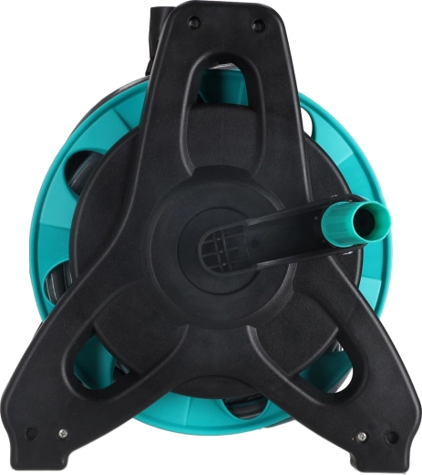 Le châssis stable avec tambour et manivelle assure un enroulement rapide et un stockage compact du tuyau. La poignée rabattable économise de la place lors du rangement et du transport.