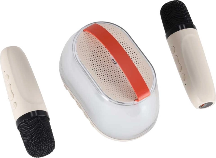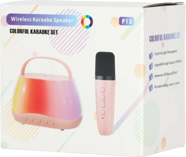 Transformez chaque fête en show à la maison. Ce set karaoké compact propose un haut-parleur sans fil avec Bluetooth, 2 microphones et un éclairage LED RGB pour une super ambiance. Profitez d'un son stable, d'une connexion facile via USB/TF/AUX et d'une longue autonomie sur batterie – idéal à la maison comme en déplacement.