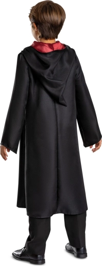 Ce costume de qualité permet aux jeunes fans de HARRY POTTER de vivre l’ambiance de Poudlard. La longue cape noire à capuche présente une surface lisse, légèrement brillante, et un intérieur de capuche bordeaux contrasté. Sur la poitrine, un blason de Gryffondor brodé et bien visible confère un aspect authentique et évoque clairement la maison préférée.