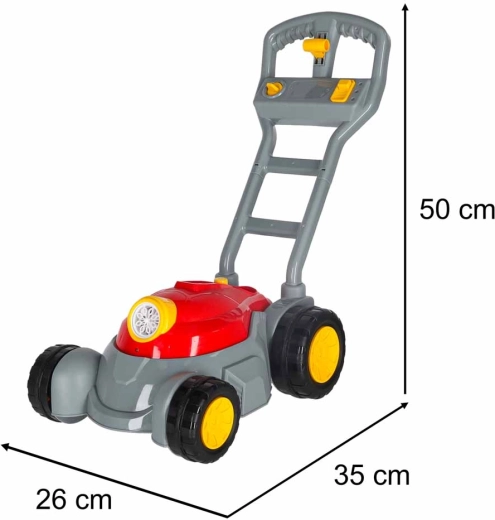 Amusante tondeuse pour enfants qui, en roulant, crée des bulles de savon, incite au jeu en plein air et séduit par ses effets lumineux et sonores. Commande facile par un seul bouton, poignée ergonomique et quatre roues stables pour jouer en toute sécurité dans le jardin comme à la maison.