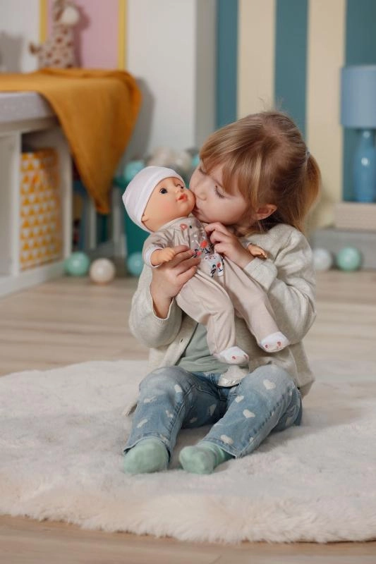 La poupée BABY born Anna beige stimule la motricité fine, l’imagination et les compétences d’attention. Son corps tout doux invite aux câlins et aux siestes partagées, tandis que ses yeux dormeurs se ferment délicatement lorsqu’on l’allonge. La grenouillère imprimée petit tigre et le bonnet assorti composent une tenue craquante pour jouer chaque jour.
