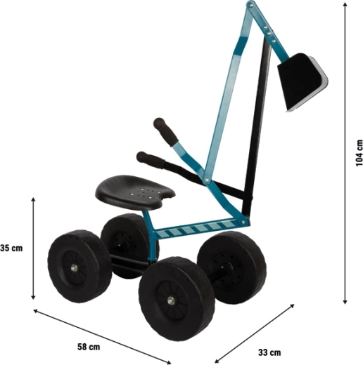 Avec un siège à 35 cm de hauteur et des poignées ergonomiques adaptées aux mains des enfants, la conduite et le creusage sont confortables et intuitifs. Idéal pour le jardin et le bac à sable, il encourage l’activité en plein air et développe la représentation spatiale ainsi que le jeu en équipe.