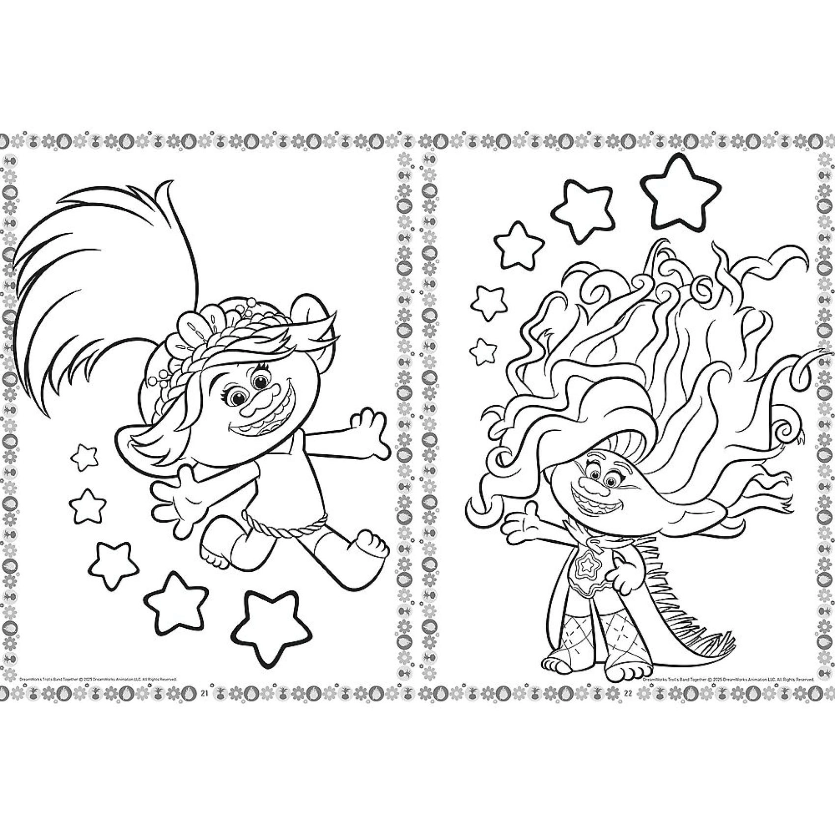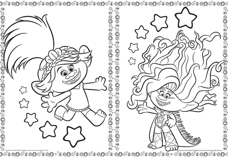 Découvrez un monde de couleurs avec les coloriages Trolls au format 20 × 27,5 cm. Chaque page propose des contours clairs à remplir, faciles pour les enfants, tout en les incitant à créer leurs propres combinaisons de couleurs.