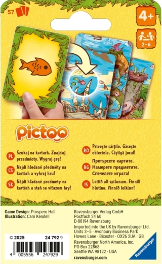 Ravensburger Pictoo : dinosaures est un jeu familial dynamique qui mettra à l’épreuve votre sens de l’observation et votre rapidité de décision. À chaque manche, vous cherchez des illustrations précises sur les cartes, et celui qui s’en débarrasse en premier gagne. Des règles simples et un rythme soutenu garantissent une prise en main rapide pour les enfants comme pour les adultes.