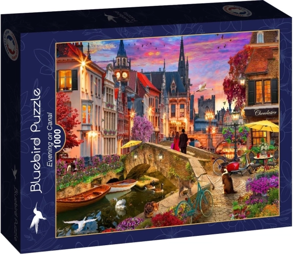 Explorez l’illustration détaillée d’une soirée romantique au canal et offrez-vous une activité relaxante et agréable. Ce puzzle de 1000 pièces ravira aussi bien les débutants que les puzzleurs expérimentés et formera, une fois terminé, une image décorative qui ressortira magnifiquement dans un cadre.