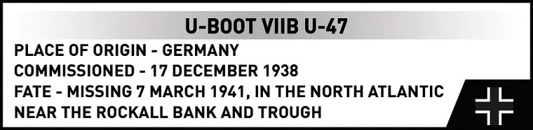Découvrez le modèle soigneusement conçu de l’U-47 type VIIB, l’un des sous-marins les plus connus de la Seconde Guerre mondiale. Le kit à l’échelle 1:300 restitue fidèlement la silhouette, les proportions et les détails caractéristiques, y compris le kiosque avec le symbole du Taureau de Scapa Flow. Grâce à ses dimensions compactes, il s’intègre parfaitement dans une vitrine, sur un bureau ou dans une collection de modèles navals.