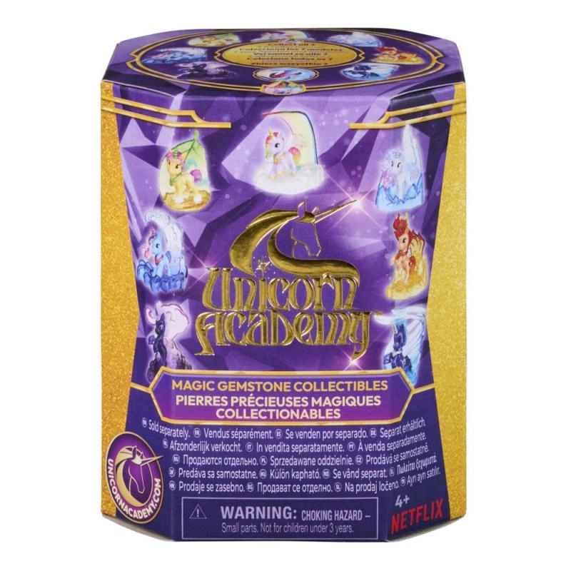 Dans chaque boîte mystère vous attend une licorne Magic Gemstone inspirée par les succès Netflix et les livres – tels que Wildstar, Leaf, River, Cinder, Glacier, Storm ou le spécial Grim qui brille dans le noir. Les figurines séduisent par leurs détails soignés, leur finition brillante et leurs socles décoratifs aux motifs d’eau, de feu, de glace, de nuages, d’arc-en-ciel ou de feuilles.