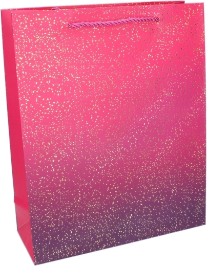 Ce sac cadeau apporte instantanément du style à votre présent. Le dégradé brillant orné de fins pois dorés offre un rendu à la fois festif et universel – idéal pour les anniversaires, fêtes, mariages et cadeaux d’entreprise. Grâce à ses dimensions compactes S, il accueille facilement des cosmétiques, petits accessoires, bougies, livres ou de petites bouteilles.