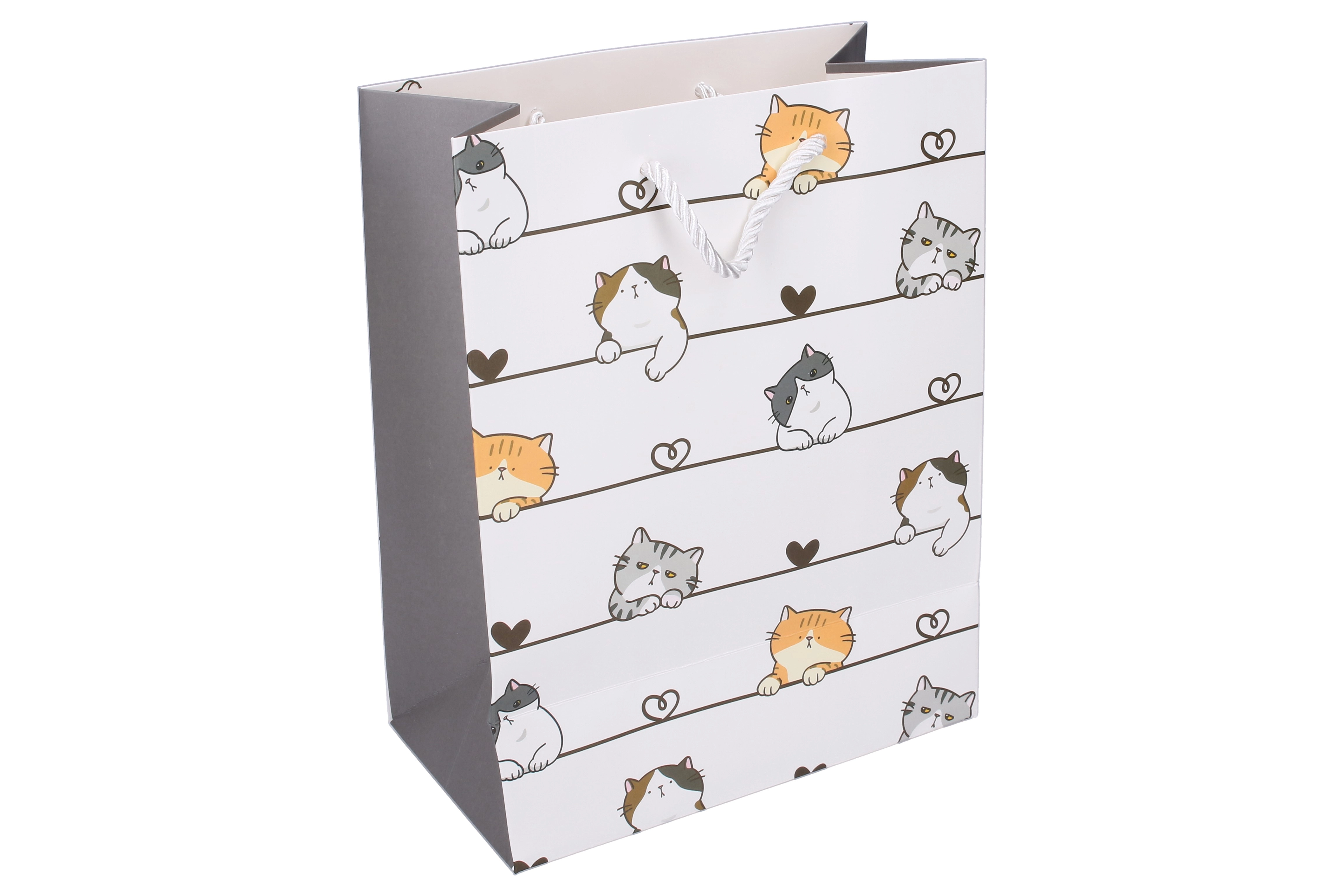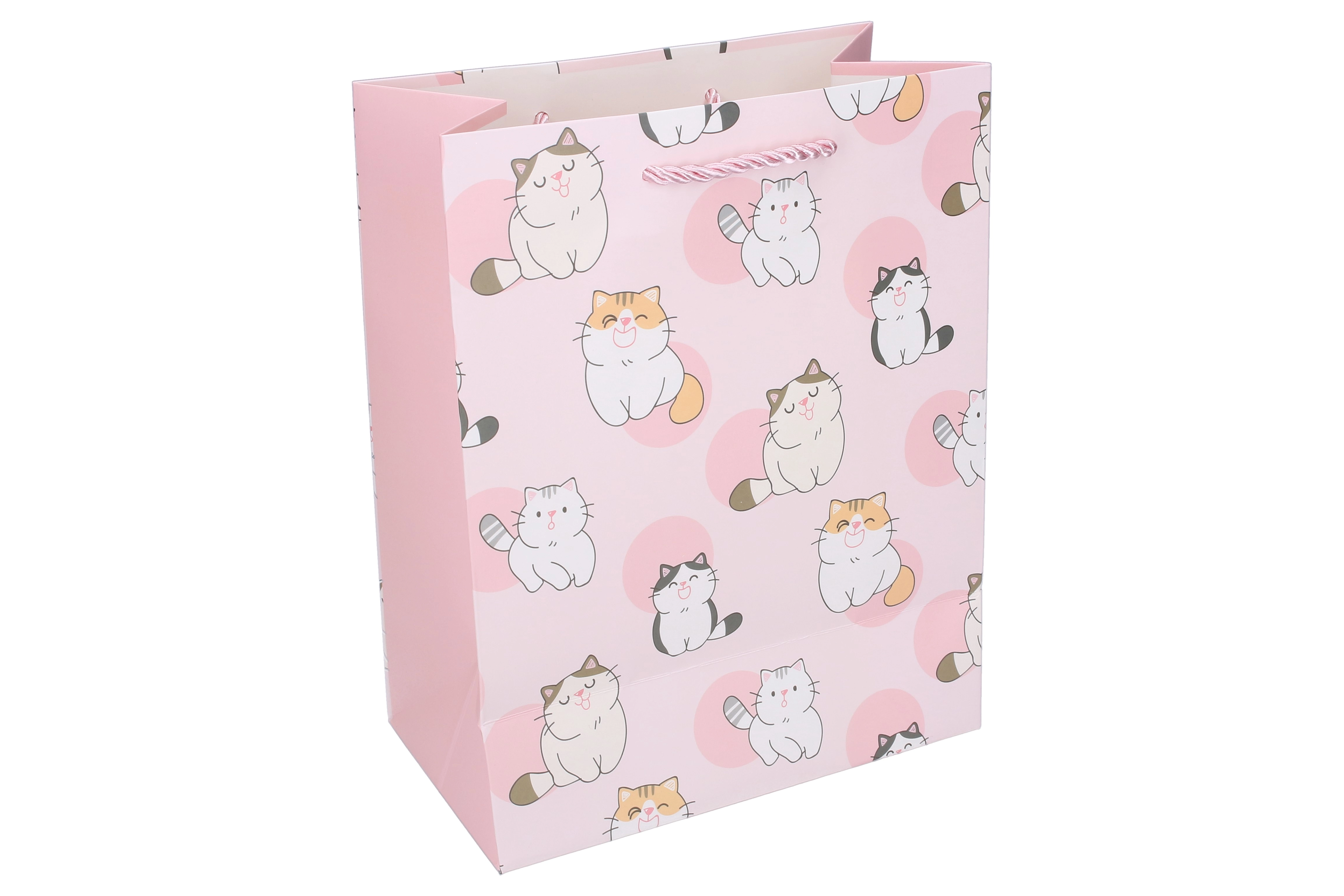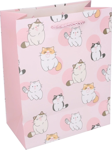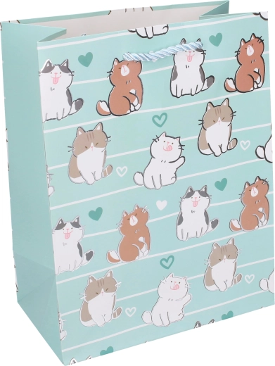 Ce sac cadeau en papier avec d’amusantes illustrations de chats est idéal pour les anniversaires, les fêtes et les petites attentions. Le format L (30 × 41,5 × 12 cm) accueille des livres, jouets, vêtements ou ensembles de petits cadeaux. Le papier épais et les cordelettes torsadées de qualité garantissent un transport confortable et sûr.