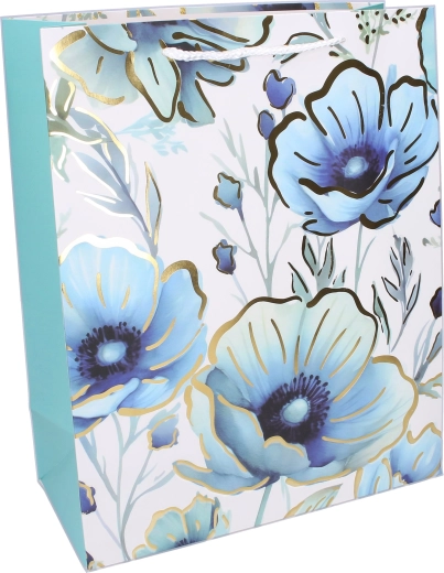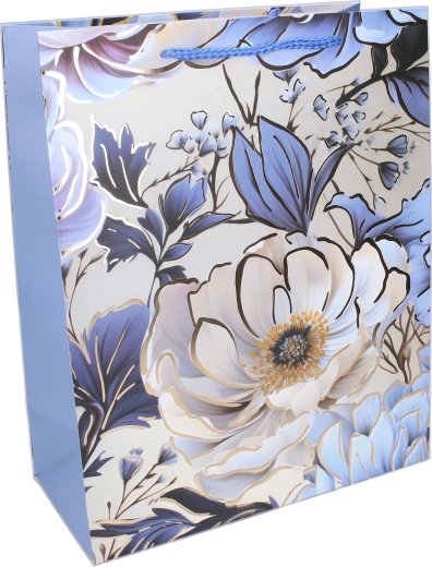 Grâce au fond élargi, le sac tient debout tout seul et se remplit facilement. La surface brillante et l’impression de qualité garantissent une présentation soignée sans papier cadeau supplémentaire. Au choix 4 variantes de design dans des tons pastel de bleu, violet et rose.