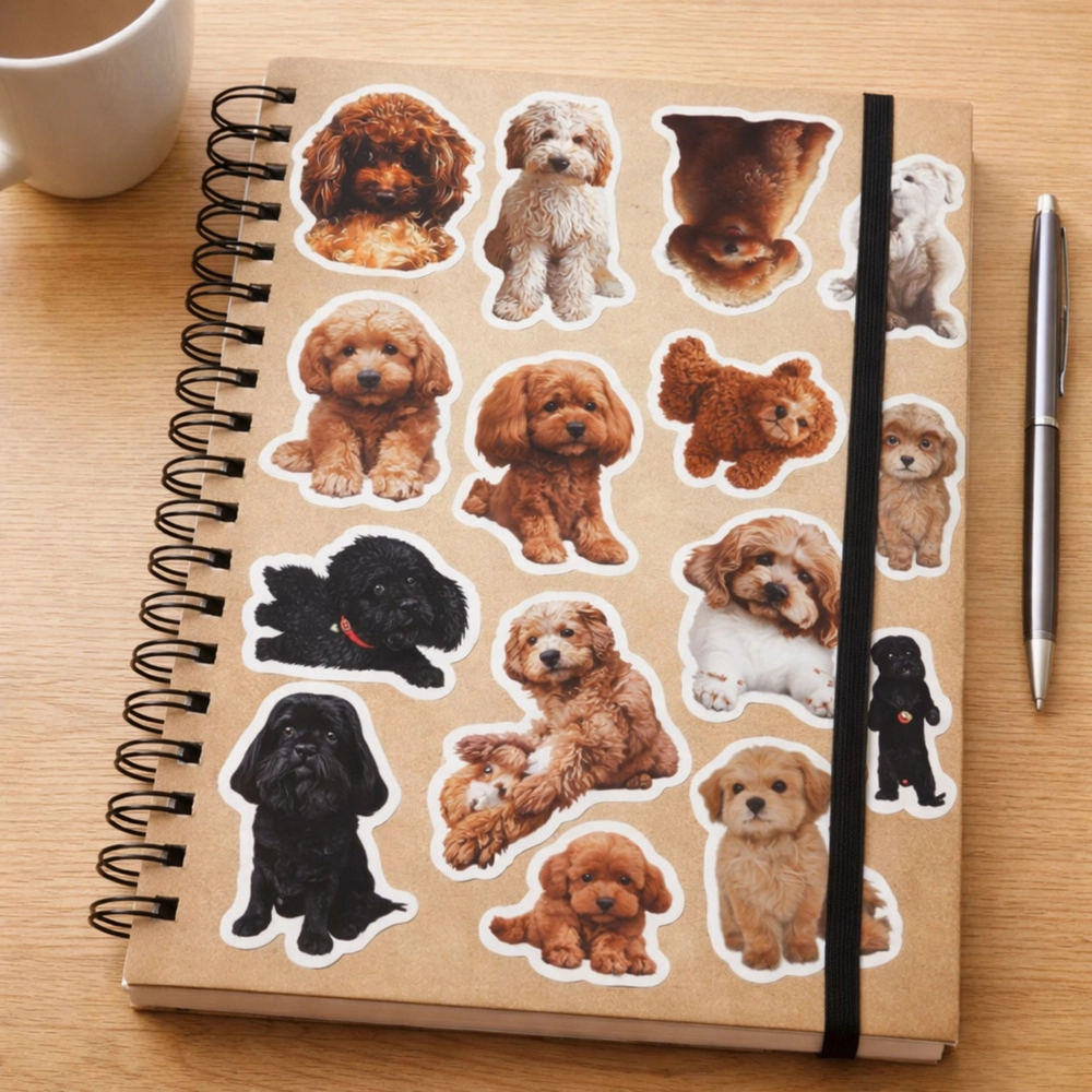 Chaque autocollant capture un caniche dans une pose et une humeur différentes. La surface brillante met en valeur les détails et les couleurs pour un effet final saisissant.