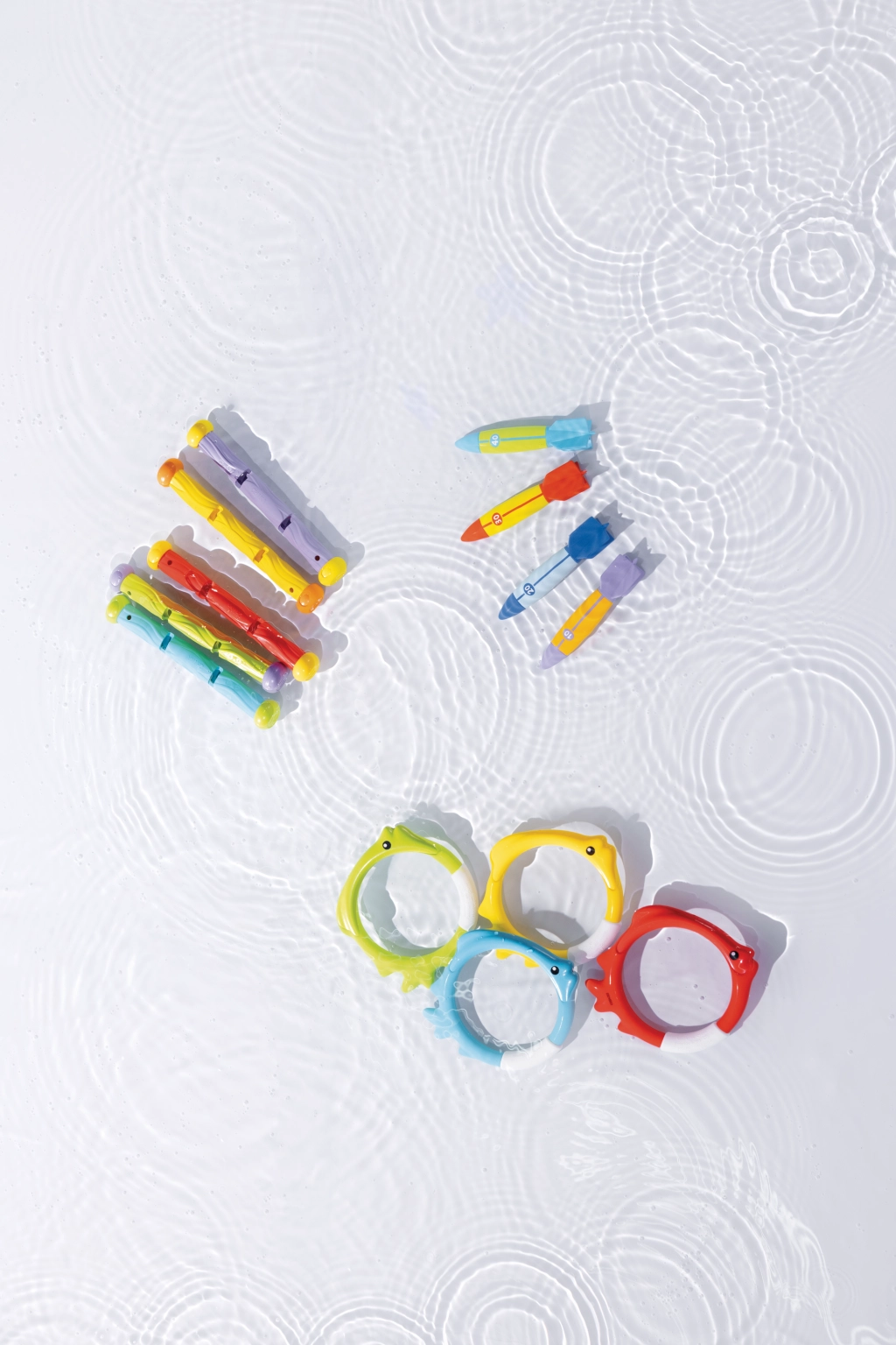 Découvrez le plaisir de l’été dans l’eau avec cet ensemble de torpilles de plongée qui motive les enfants à bouger, améliore leur orientation sous l’eau et favorise l’entraînement de la respiration. Grâce à leur forme aérodynamique, les torpilles glissent de façon stable jusqu’à 6 mètres et leur matériau souple mais ferme garantit un jeu en toute sécurité.